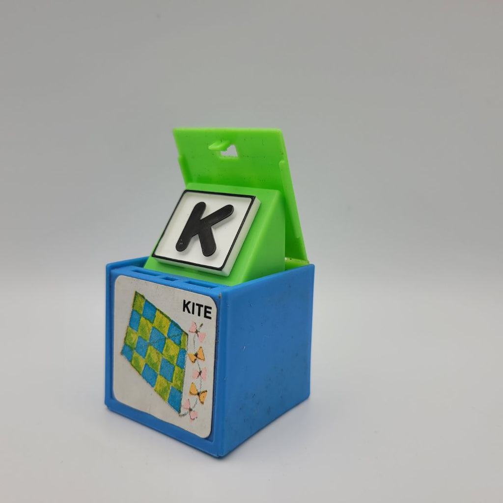 1972 Mattel Alphabet Pop Up Block Toy Plastic Vintage Letter Learn School Kite Measures about 1.5 Inches