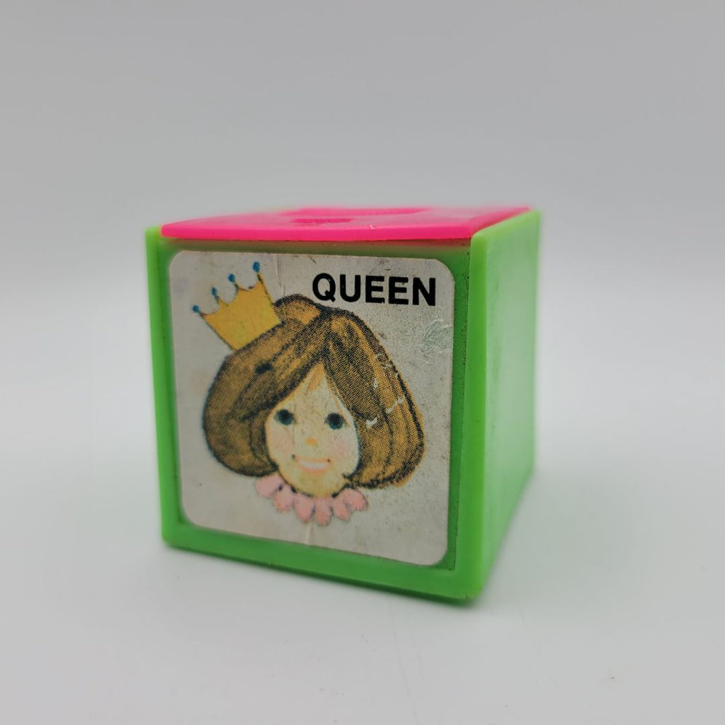 1972 Mattel Alphabet Pop Up Block Toy Plastic Vintage Letter Learn School Queen Measures about 1.5 Inches