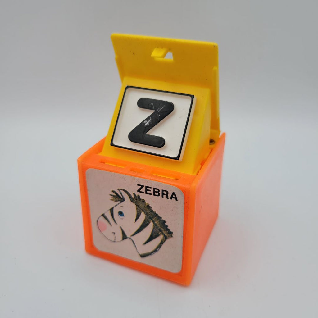 1972 Mattel Alphabet Pop Up Block Toy Plastic Vintage Letter Learn School Zebra
