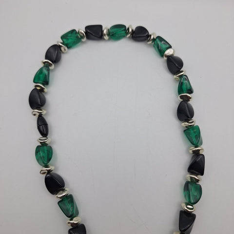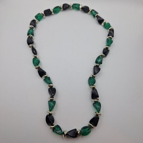 22 Inch Necklace Green Black Retro Beaded Plastic Twist Clasp Vintage Classic
