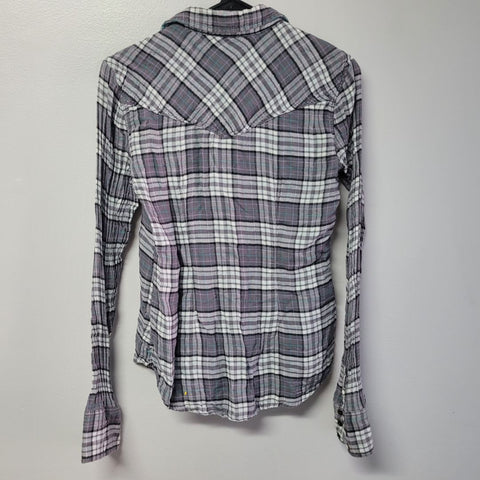 American Eagle Outfitters Plais Shirt Snap Pockets Women's Size 4 Small Gray Measurements in the photos for best fit