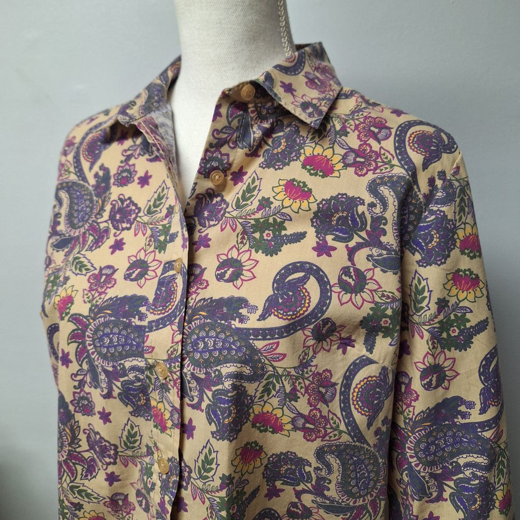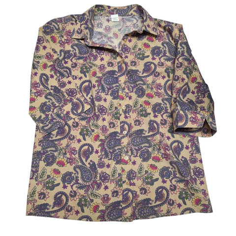 American Sweetheart Button Down Blouse Womens Small Vintage Floral Paisley Retro Measurements in the photos for best fit.
