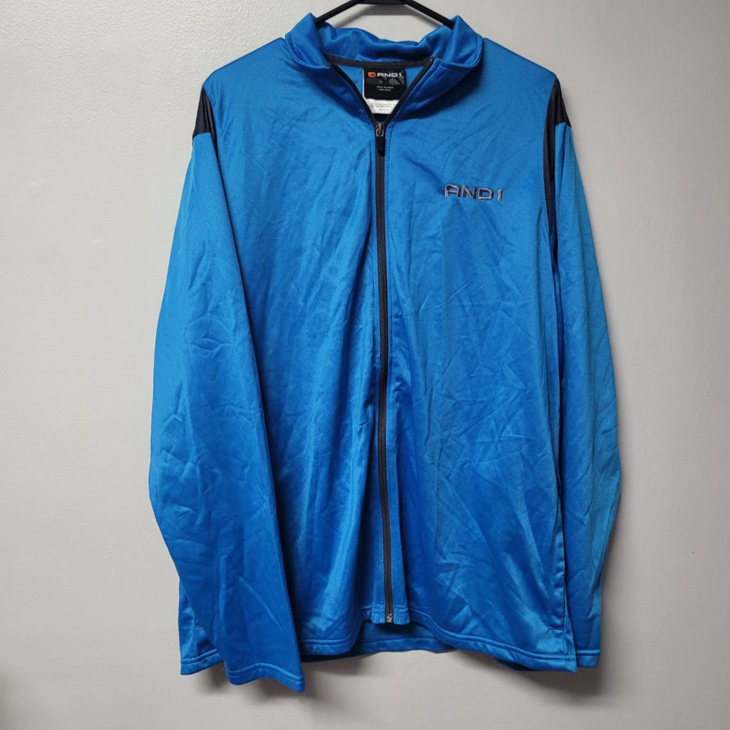 AND1 Full Zip Jacket Lightweight Pockets Blue Athletic Windbreaker Mens XL Measurements in the photos for best fit
