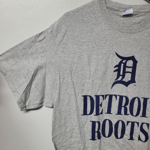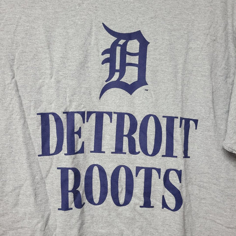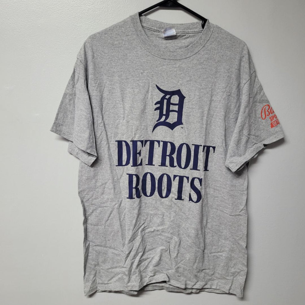 Bally Sports Detroit Tigers Baseball Roots Mens Large Tee Shirt Gray Blue Mich Measurements in the photos for best fit
