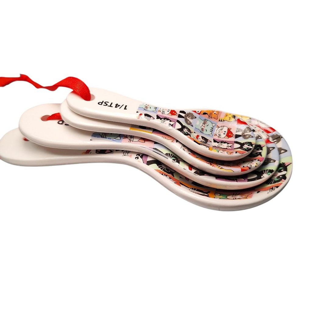 Cat Pet Portrait Measuring Spoons Kitty Meow Purr Cartoon Set Teaspoon Table