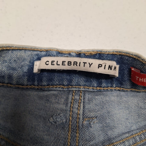 Celebrity Pink Rebel Distressed Denim Light Wash Shorts Womens 7/28 Raw Hem Measurements in the photos for best fit