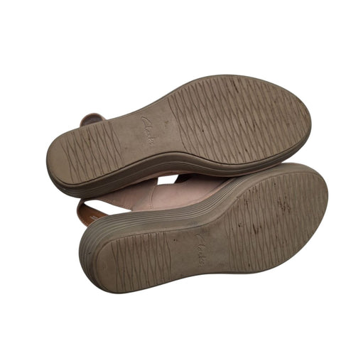 Clarks Soft Cushion Sandal Wedge Shoes Adjustable Straps Womens 9 Wide Beige Like new- every strap across the top opens and adjusts as needed. Beige/tan in color.