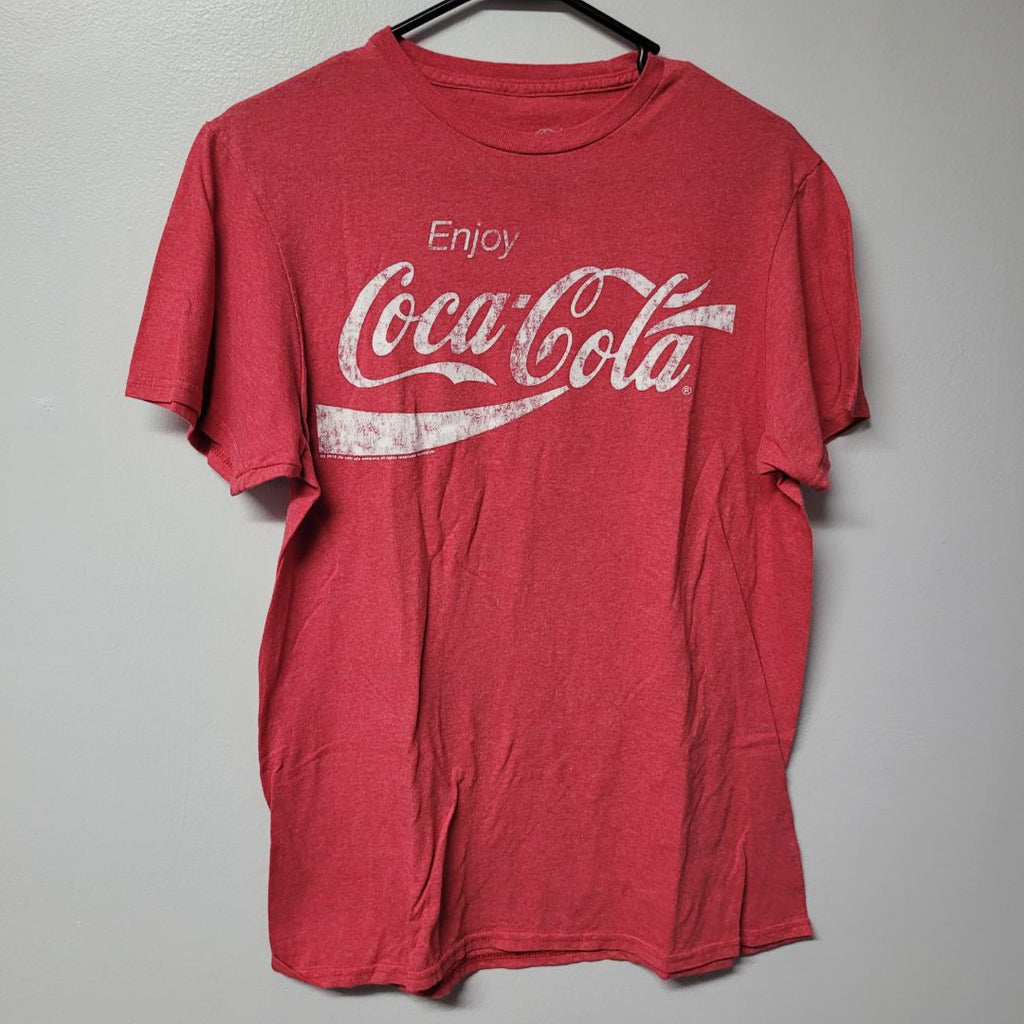 Coca Cola Tee ShirtRed Faded Mens Medium Enjoy Logo Pop Soda Halloween Costume Measurements in the photos for best fit