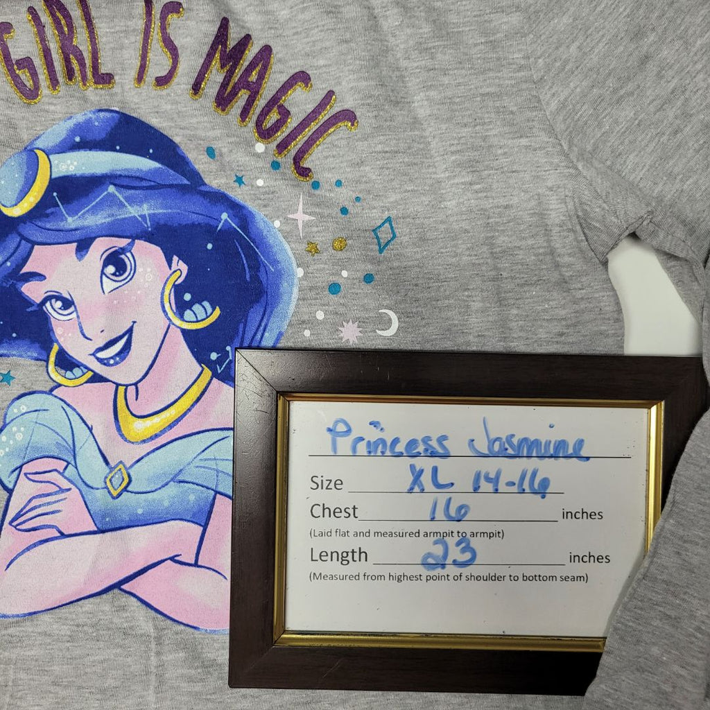 Disney Princess Jasmine Long Sleeve Tee Shirt Aladdin Girls XL 14 16 Measurements in the photos for best fit