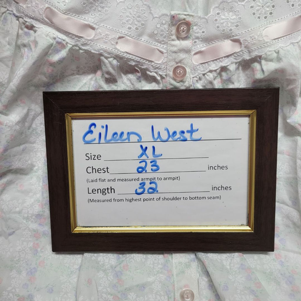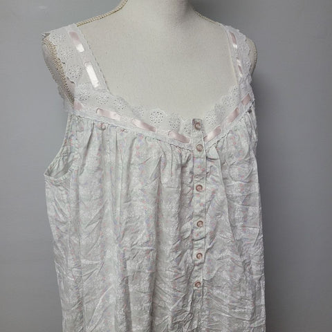 Eileen West Nightgown Sleeveless Lace Buttons Cotton Womens XL Pajama Loungewear Measurements in the photos for best fit