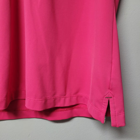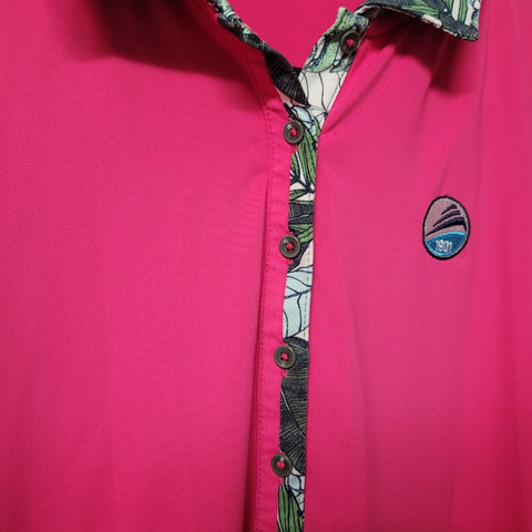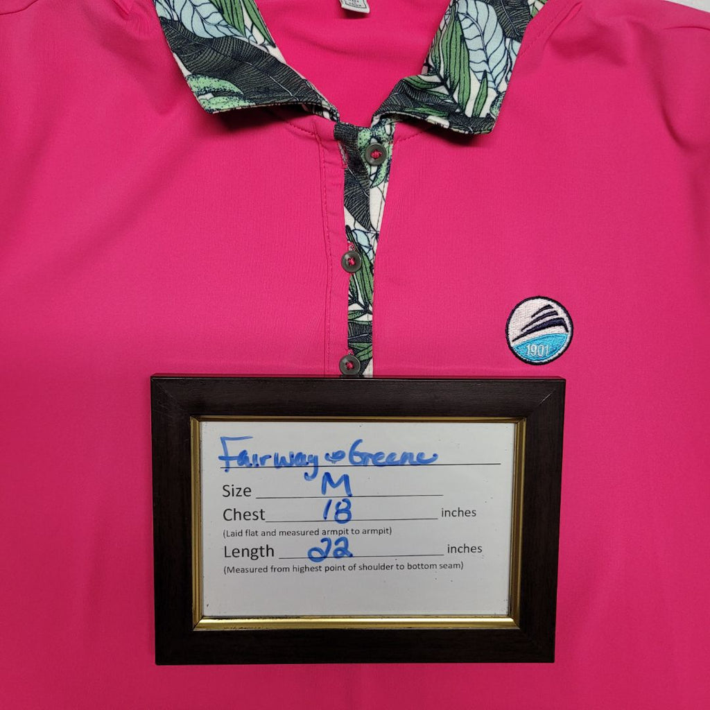 Fairway & Greene Gold Tee Pink Womens M Leaves Collar 1901 Sault Country Club Measurements in the photos for best fit