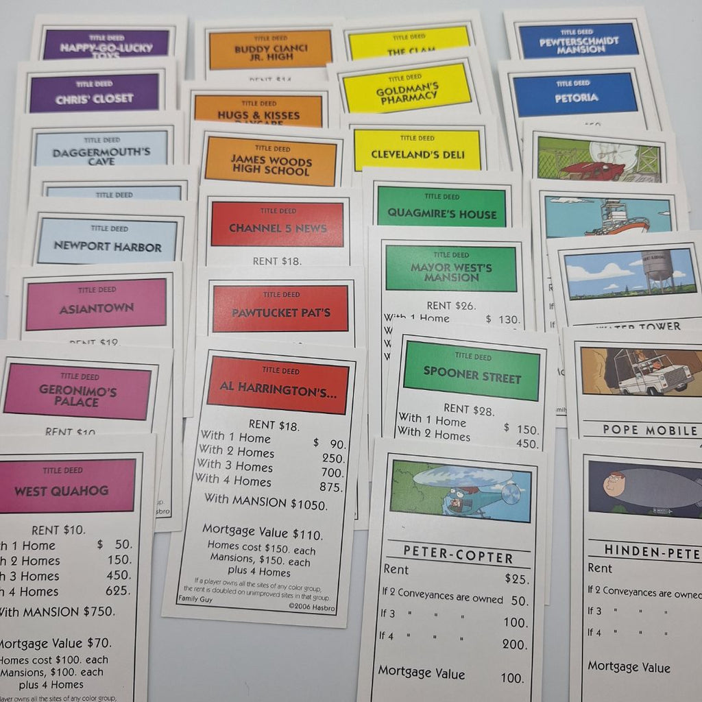 Family Guy Monopoly Money Cards Deeds Instructions Mortgage Replacement Pieces