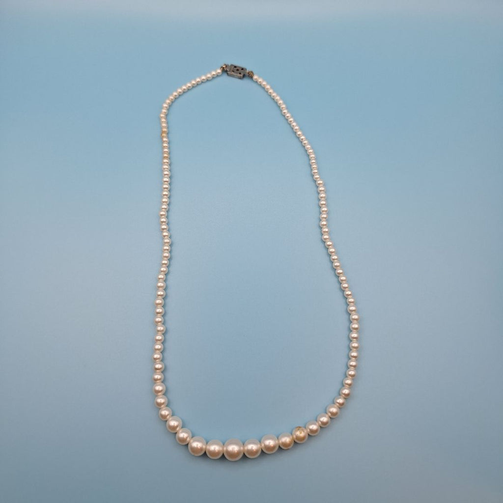 Faux Pearl Necklace 16 Inch Vintage Costume Small Japan Clasp Classy