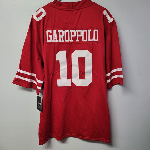 Garoppolo 49ers Jersey Red NFL Mens XXL 10 Football Fan Team Game Day Superbowl Measurements in the photos for best fit. Some color bleeding as shown.