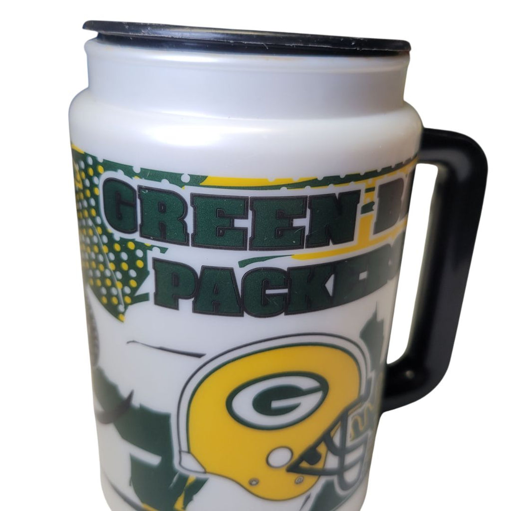 Green Bay Packers Cup Travel 90s Yellow Helmet Football Lid Handle Collect NFL