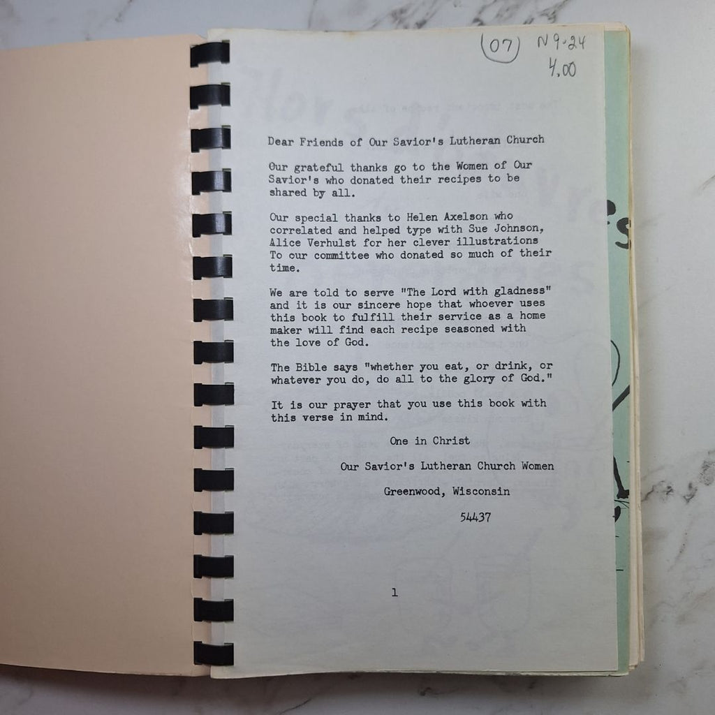 Greenwood Wisconsin Cook Book 1977 ALCW Lutheran Church Recipes Vintage Gift