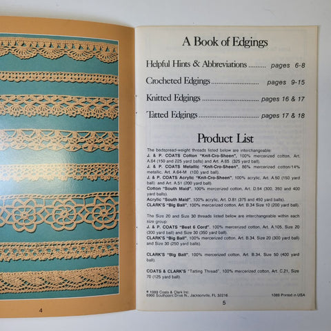 J & P Coats Book 305 Edgings Crochet Thread Doily Lace Details Accent Vintage
