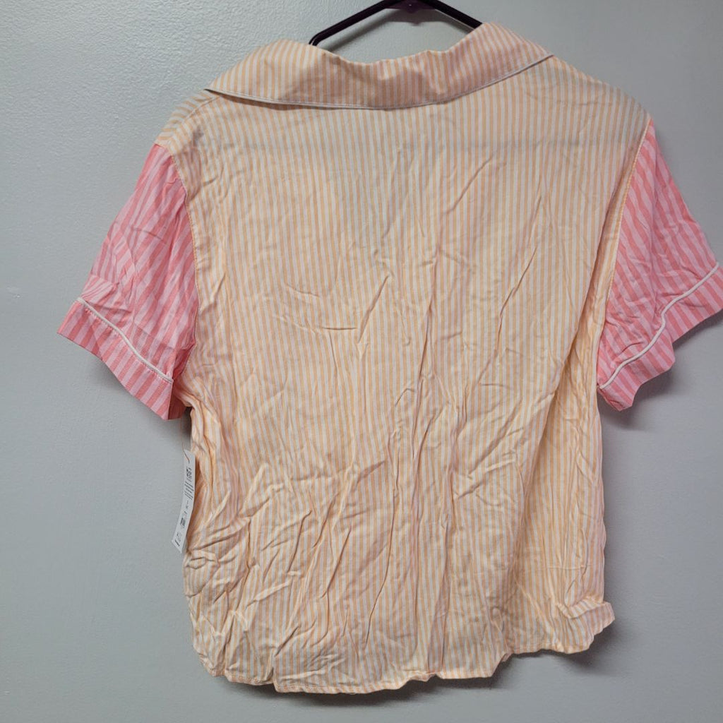 Joyspun Pajama Top Striped Shirt Collar Pocket Pink Peach Tags Womens Small Tags Measurements in the photos for best fit