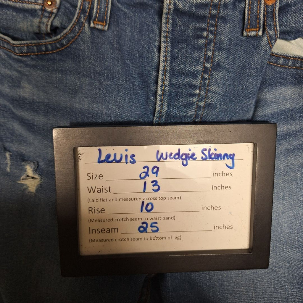 Levis Wedge Skinny Jeans Distressed Blue Womens Size 29 Denim Measurements in the photos for best fit