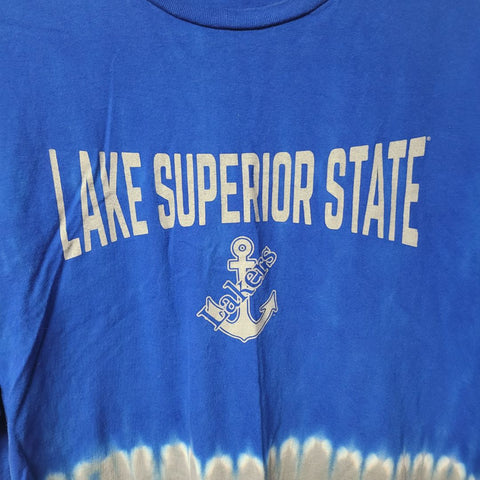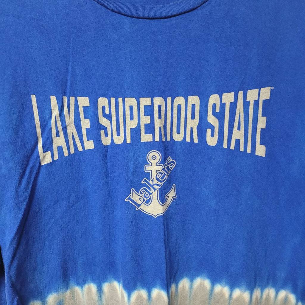 LSSU Lake Superior State Lakers Blue Tie Dye Cotton Mens 2XL Alumni Student Measurements in the photos for best fit