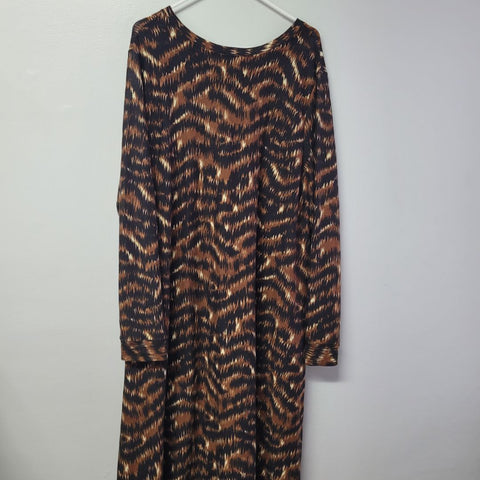 Lularoe Dress Long Sleeve Pockets Animal Print Crew Neck Womens 3XL Plus Brown Measurements in the photos for best fit