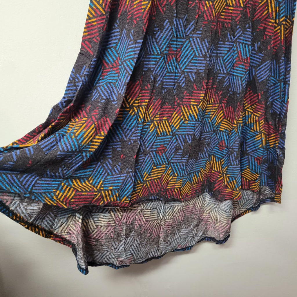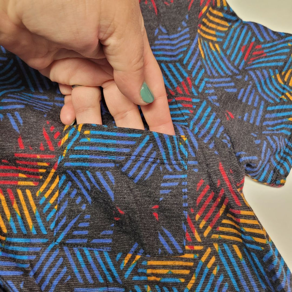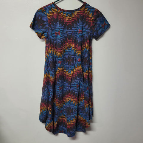 Lularoe Dress Short Sleeve Chest Pocket Womens XXS Geometric Tribal Mid Length Measurements in the photos for best fit