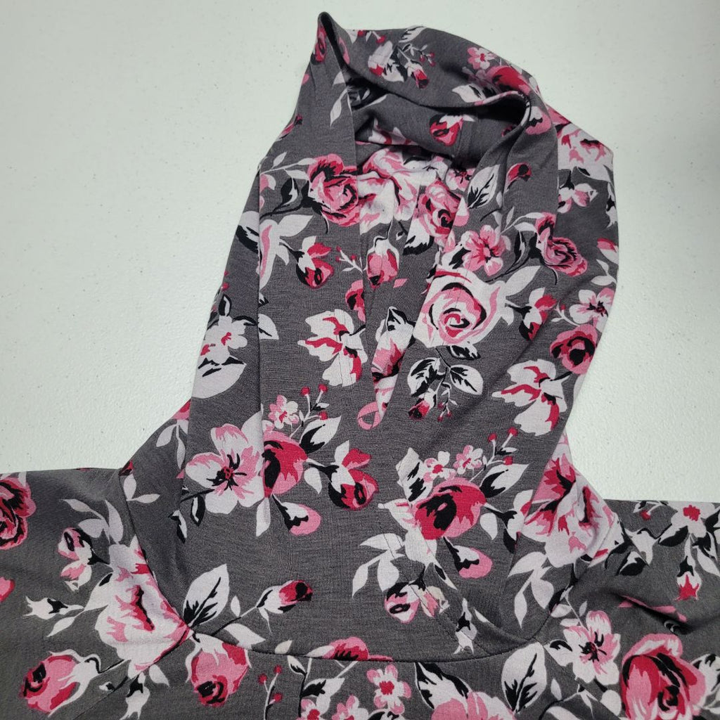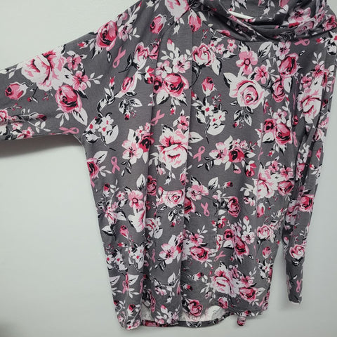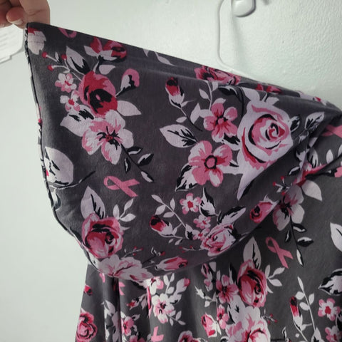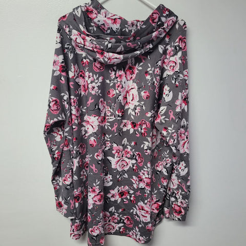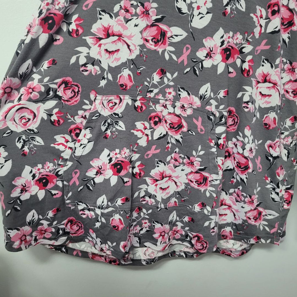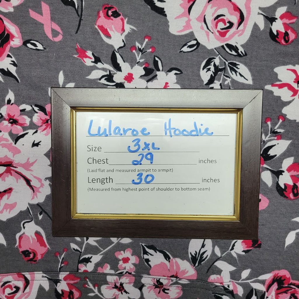 Lularoe Hoodie Shirt Long Sleeve Gray Roses Pink Ribbon Cancer Aware Womens 3XL Measurements in the photos for best fit