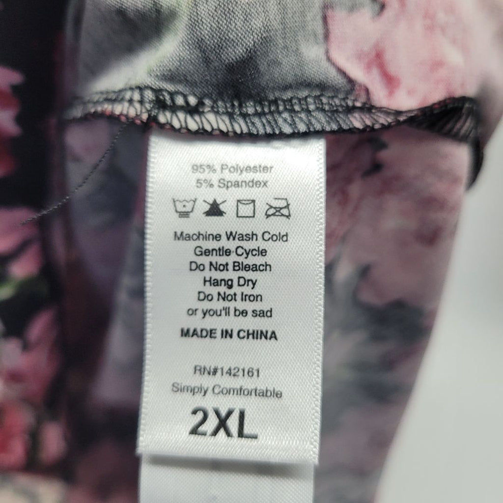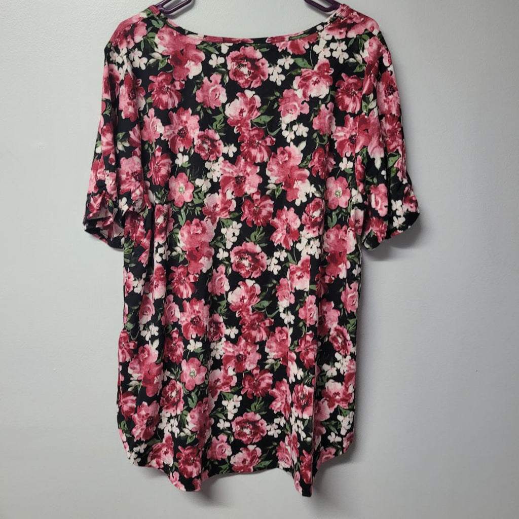 Lularoe Morgan Shirt Top Short Sleeve Red Pink Flowers Floral Womems 2XL Measurements in the photos for best fit