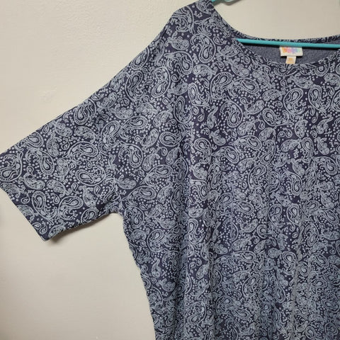 Lularoe Shirt Blue Paisley Womens Plus Size 3XL Oversized Tunic Fall Comfy Relax Measurements in the photos for best fit