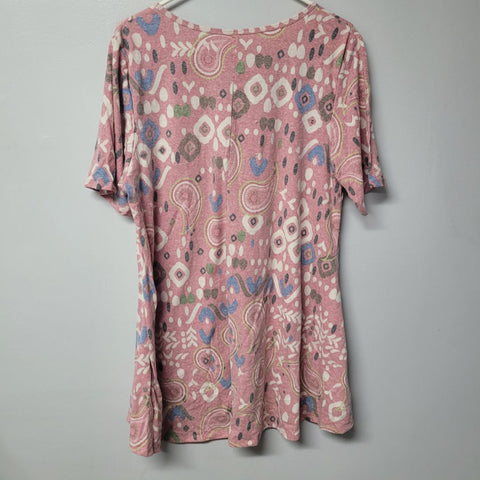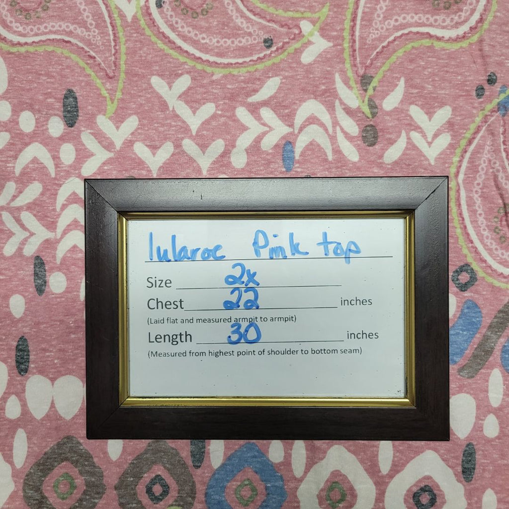 Lularoe Shirt Top Tunic Paisley Pink Womens Plus 2XL Stretchy Short Sleeve Measurements in the photos for best fit