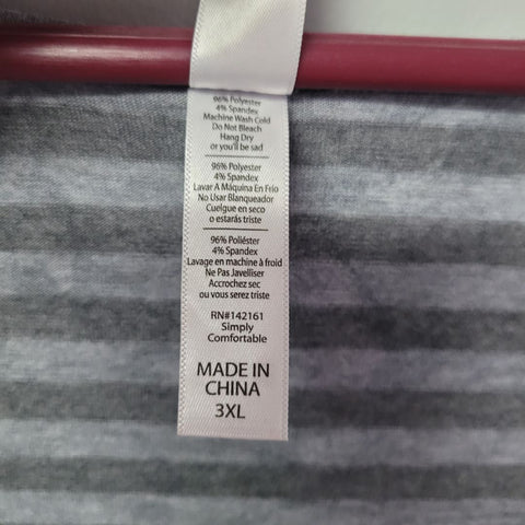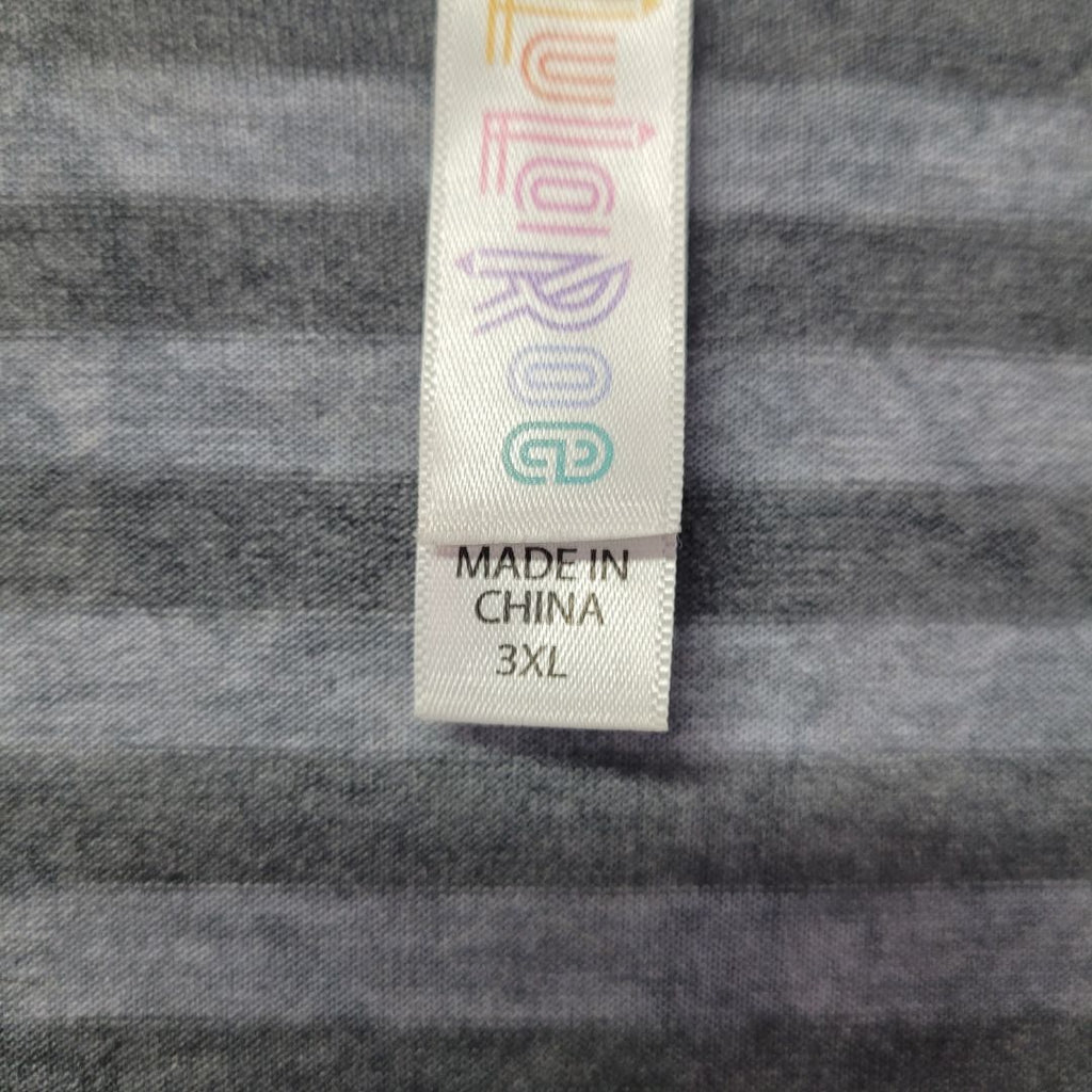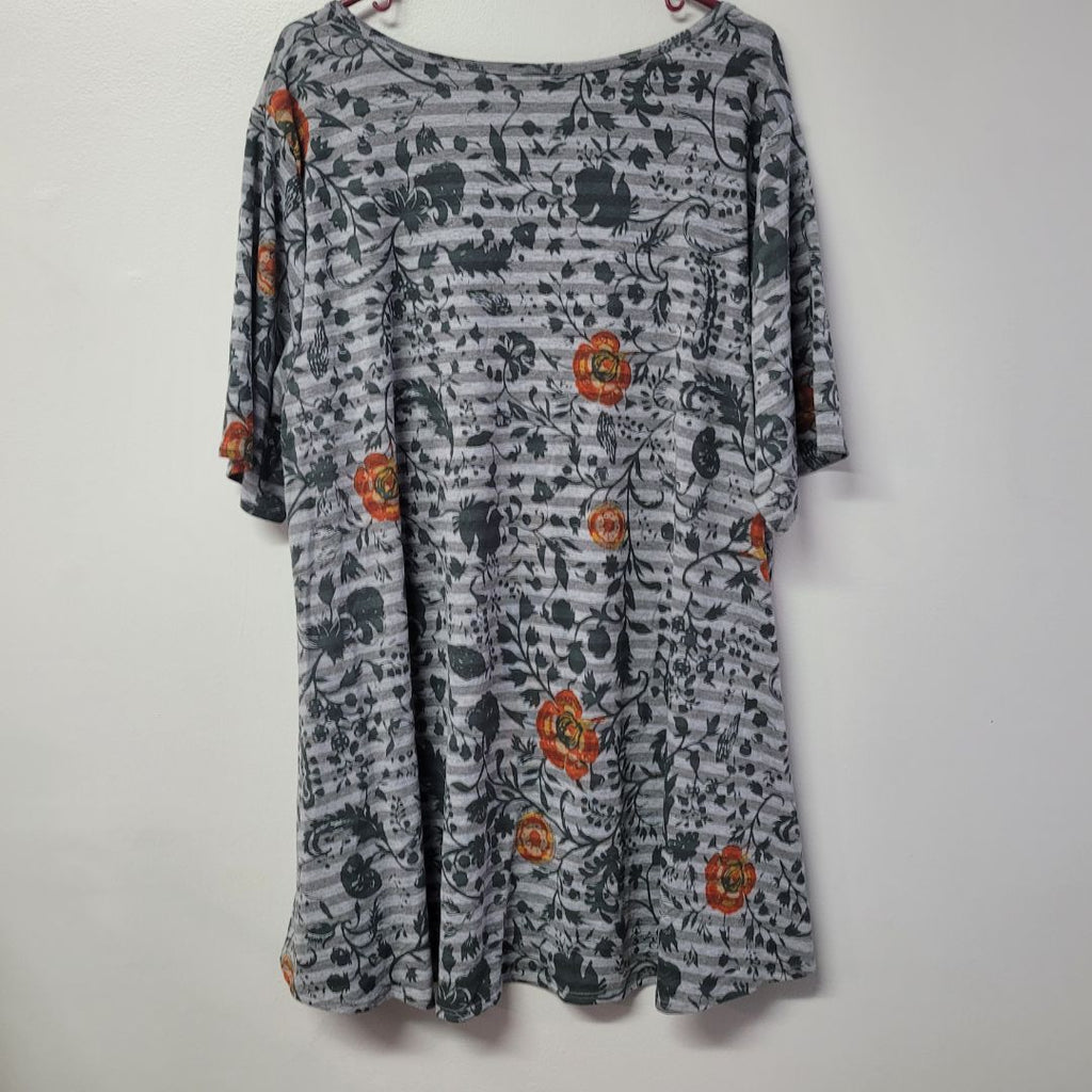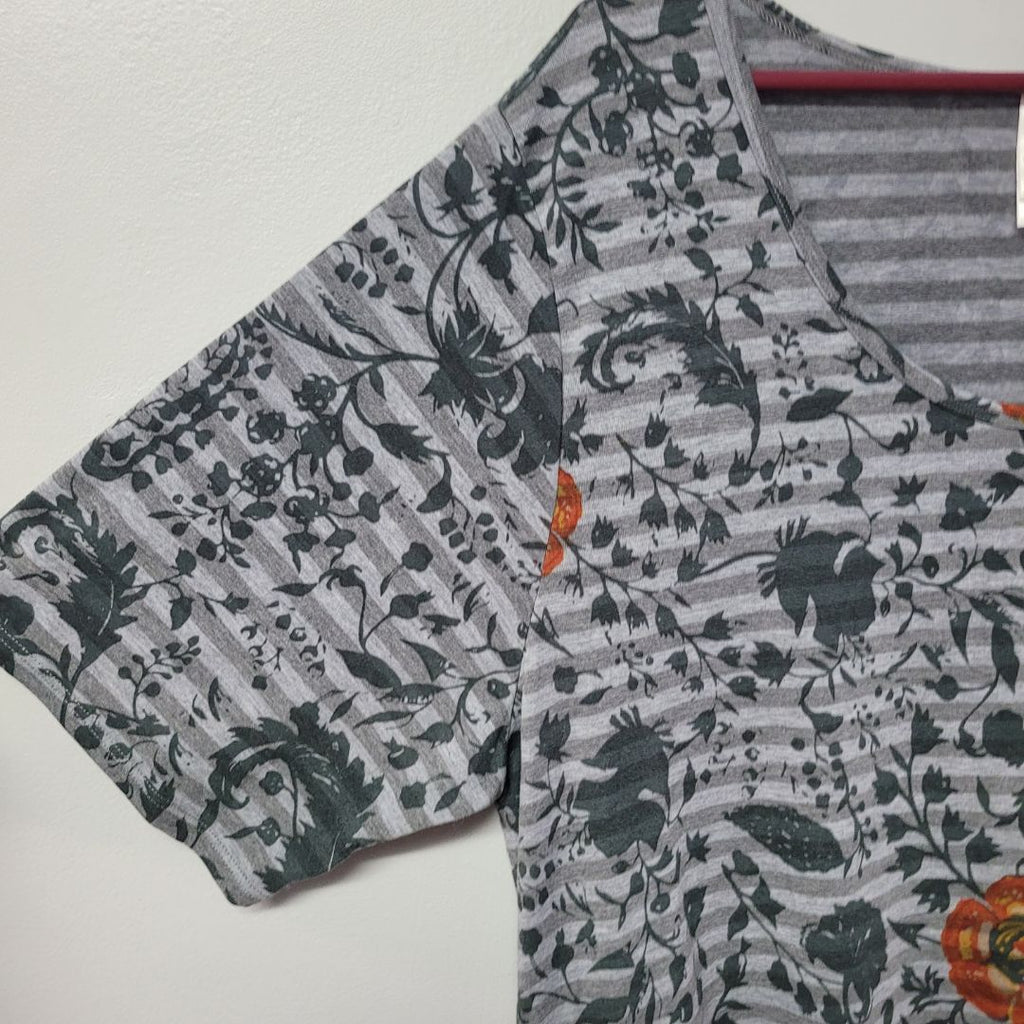 Lularoe Shirt Top Womens Plus 3XL Gray Stripes Flowers Roses Tunic Comfortable Measurements in the photos for best fit