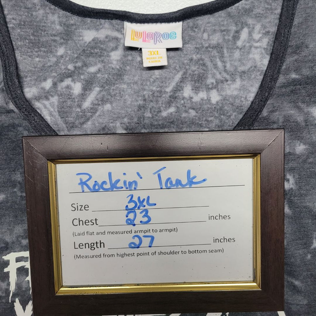Lularoe Tank Top Rock Roll Guitar Gray Womens Plus 3XL Feel it in Your Bones Looks to run small - Measurements in the photos for best fit