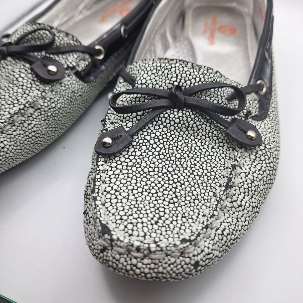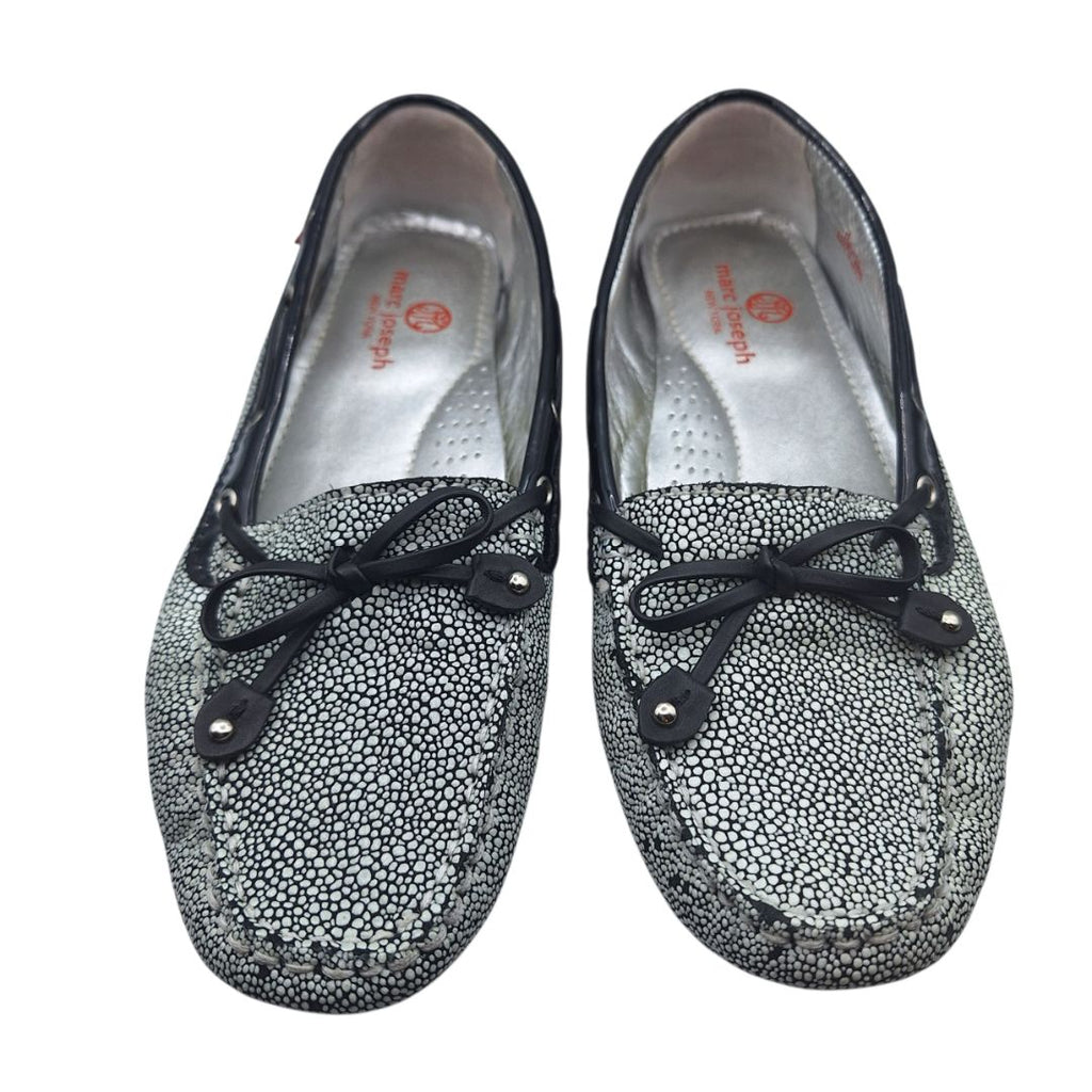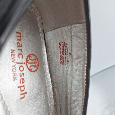 Marc Joseph Pebbled Flats Cypress Hill Tie Black White Leather Brazil Womens 8 Measure about 10 inches toe to heel. pre-owned