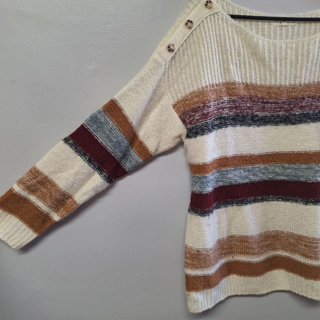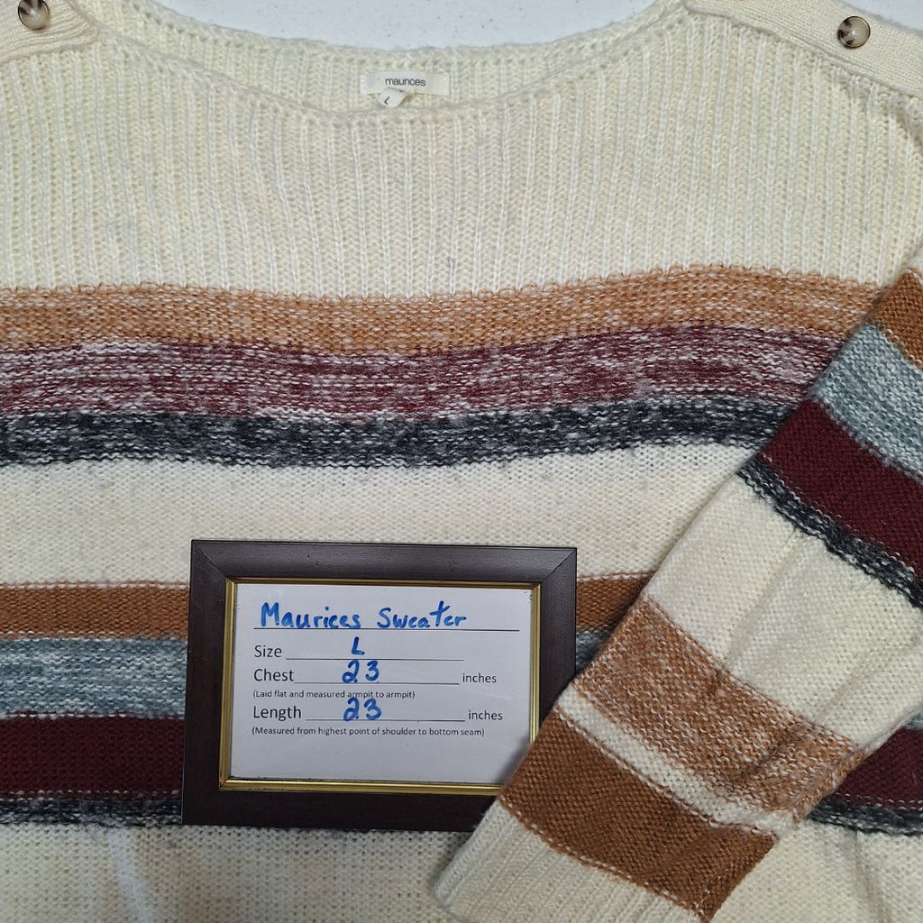 Maurices Striped Sweater Soft Acrylic Womens Large Button Shoulders Measurements in the photos for best fit
