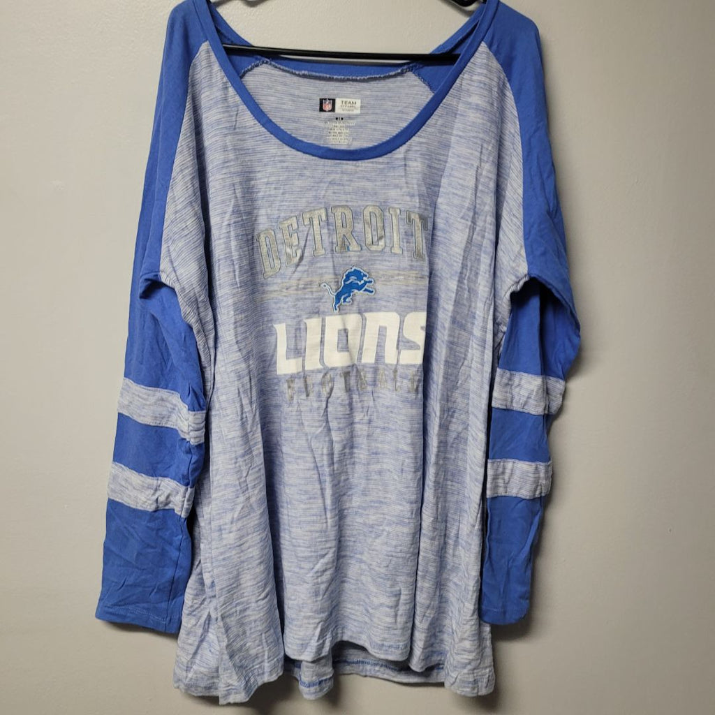 NFL Teams Detroit Lions Football Shirt Long Sleeve Blue Gray Womens 2X Michigan Measurements in the photos for best fit