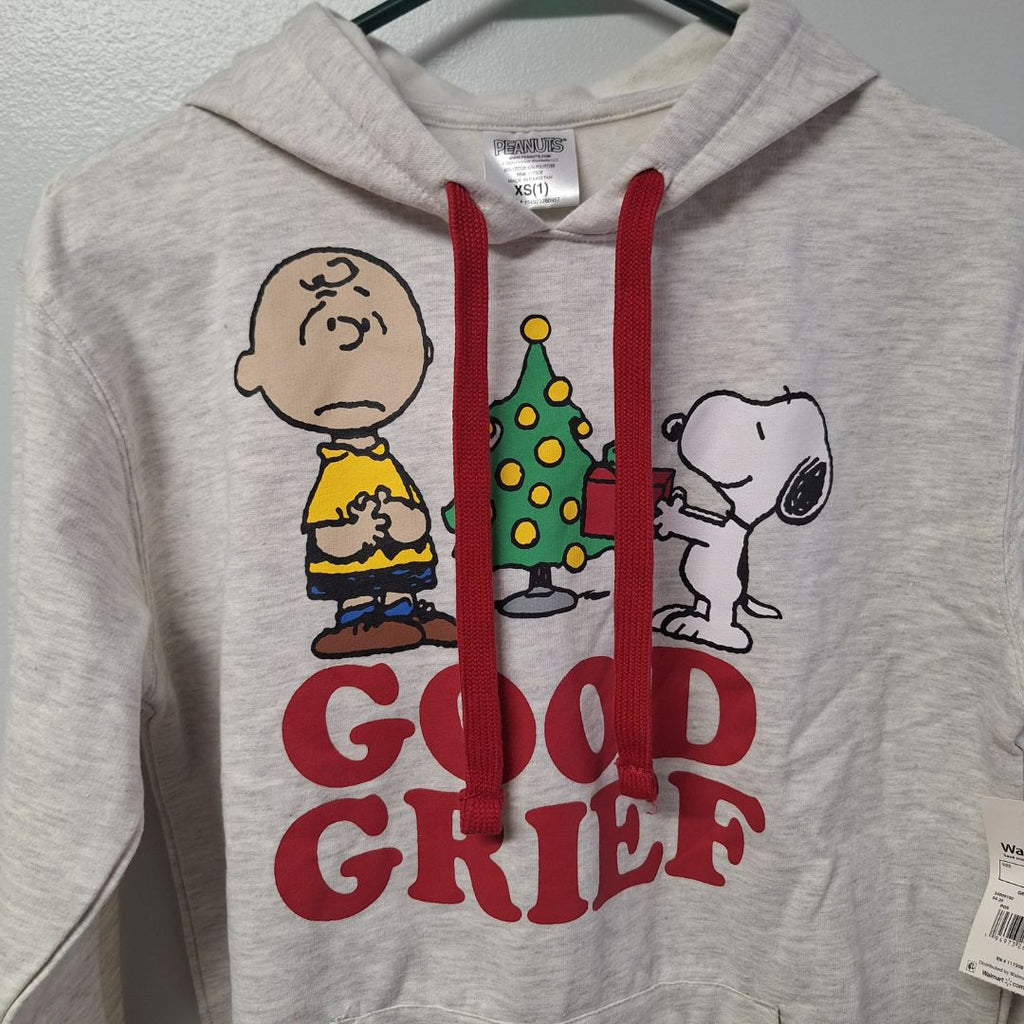 Peanuts Good Grief Hoodie Sweatshirt Womens XS Christmas Tree Charlie Brown Measurements in the photos for best fit