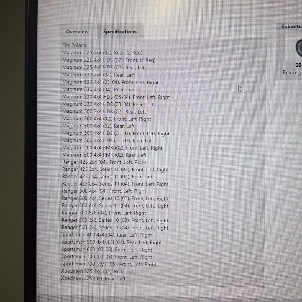 Quad One Wheel Bearing 7255-1 Polaris Magnum Ranger Sportsman Xpedition Replacement