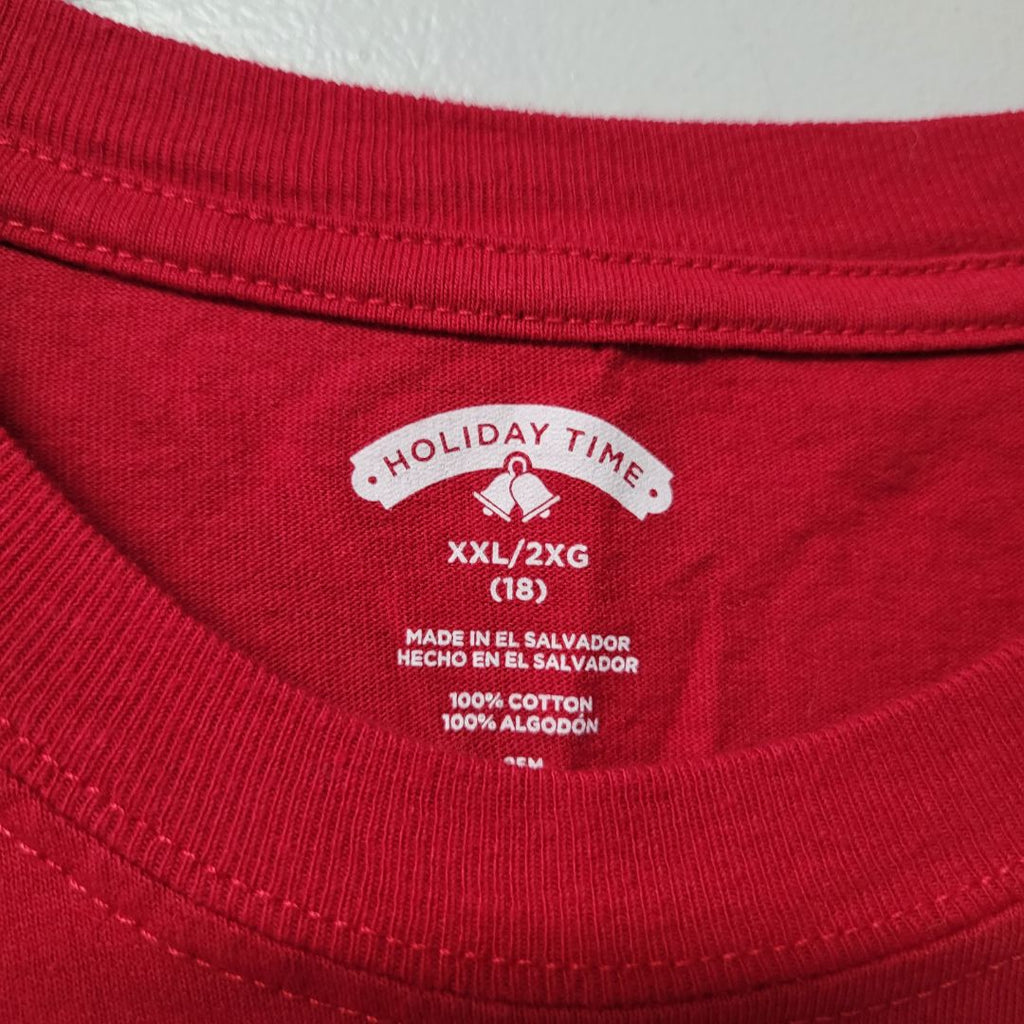 Santa Shirt Christmas Costume Red White Youth XXL Party Short Sleeve Measurements in the photos for best fit