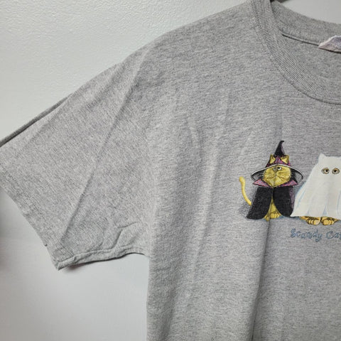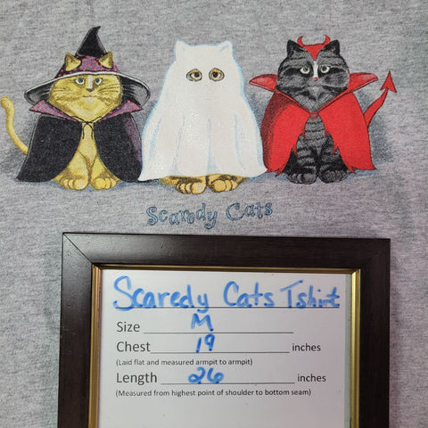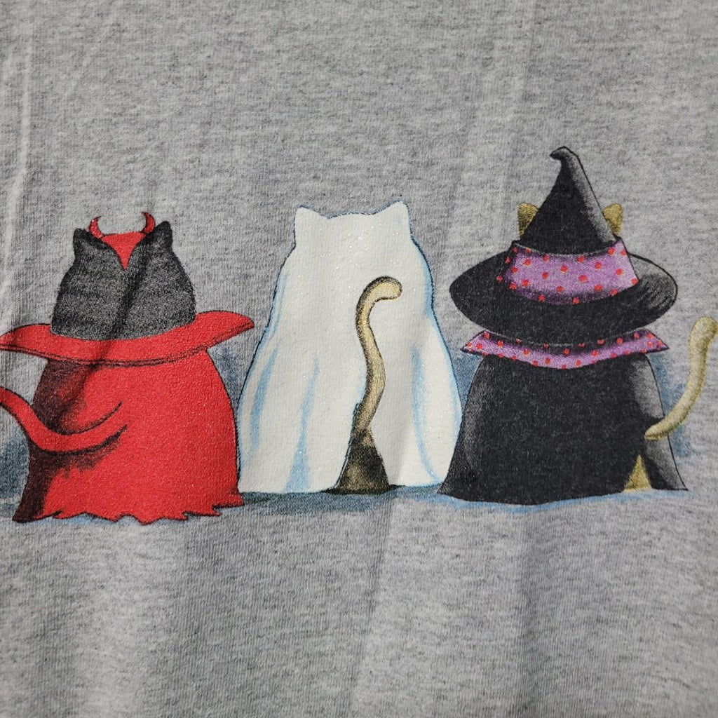 Scared Cats Halloween Shirt Gray Costumes Cute Kitty Womens Medium Tee Measurements in the photos for best fit