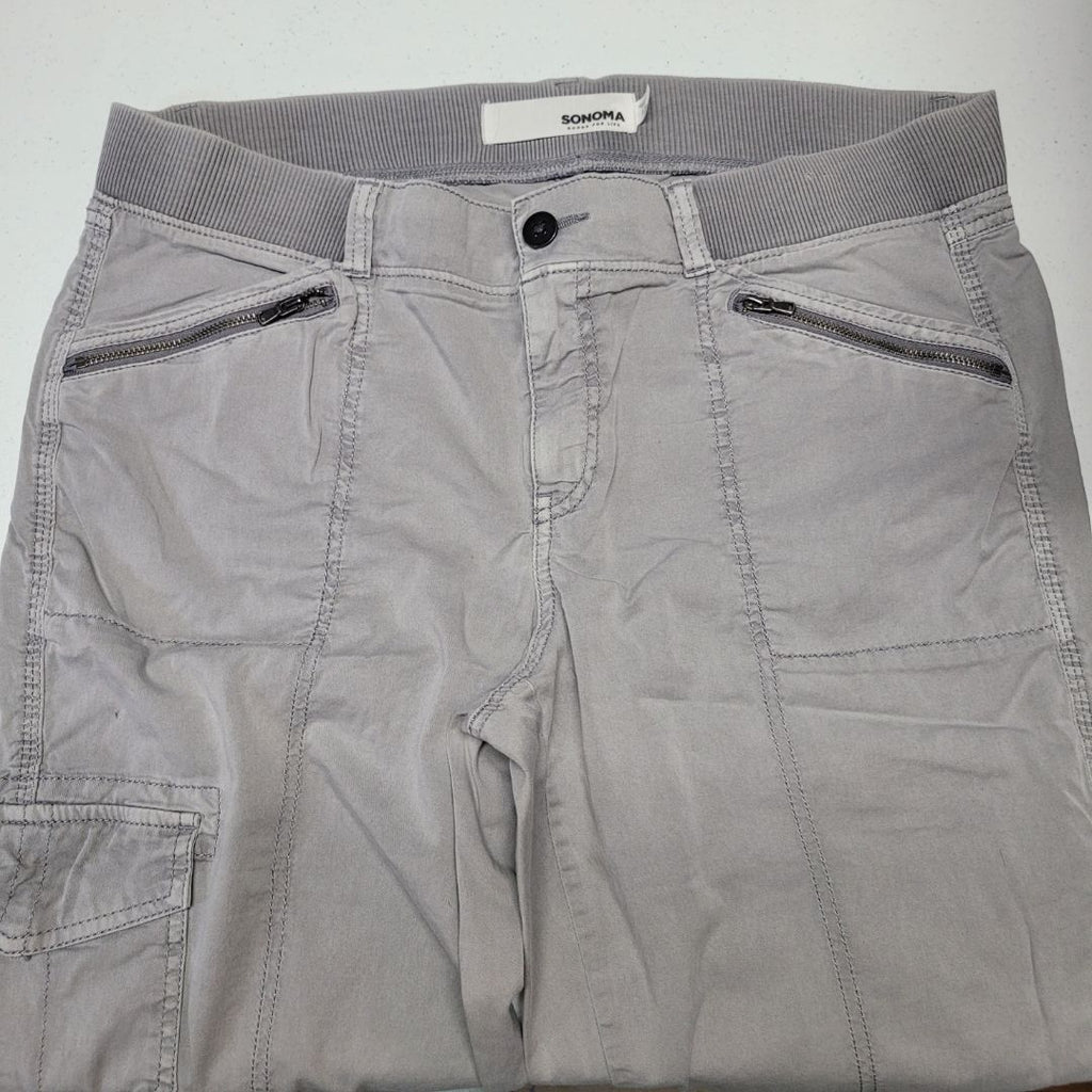 Sonoma Pants Cotton Light Gray Boho Fall Zip Pockets Womens 12 Capsule Wardrobe Measurements in the photos for best fit