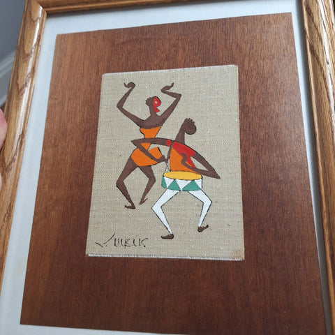 Vintage Virgilio Nabais Artwork Brazilian Dancing Music Framed 15 x 12 Fabric