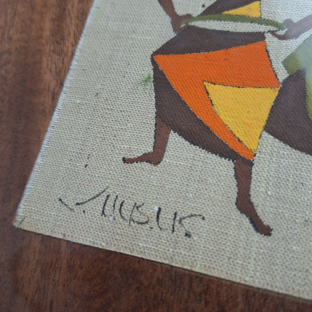 Vintage Virgilio Nabais Artwork Brazilian Woman Farmer Framed 15 x 12 Fabric