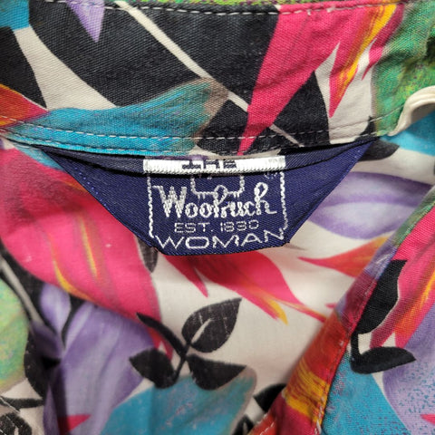 Woolrich Woman Floral Shirt Button Down Medium Vibtage Collared Short Sleeve Measurements in the photos for best fit