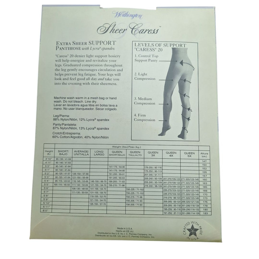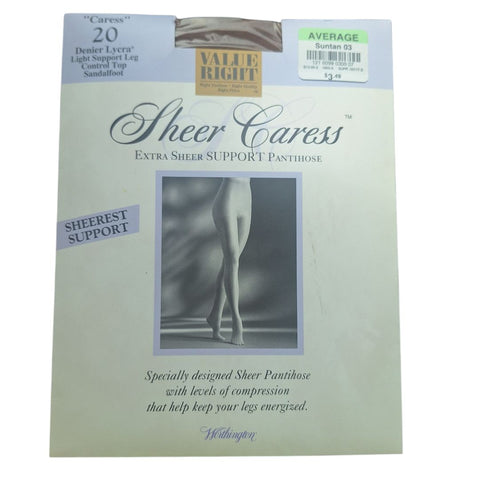Worthington Sheer Caress Pantihose Sandaltfoot Suntan 03 Control Top Average Dark Opened Package- appear new